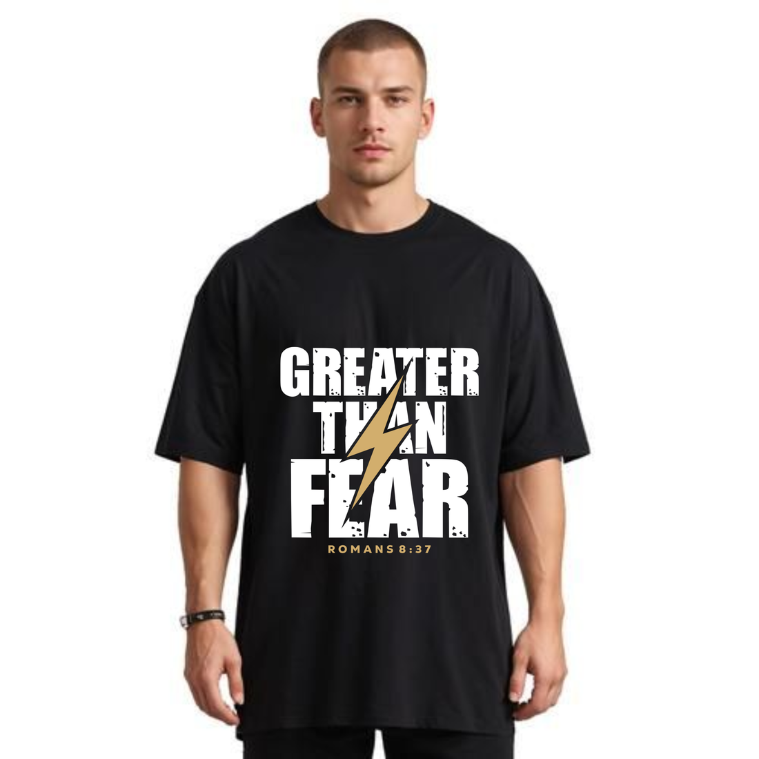 Greater Than Fear – Romans 8:37 Tee with Lightning Bolt Graphic