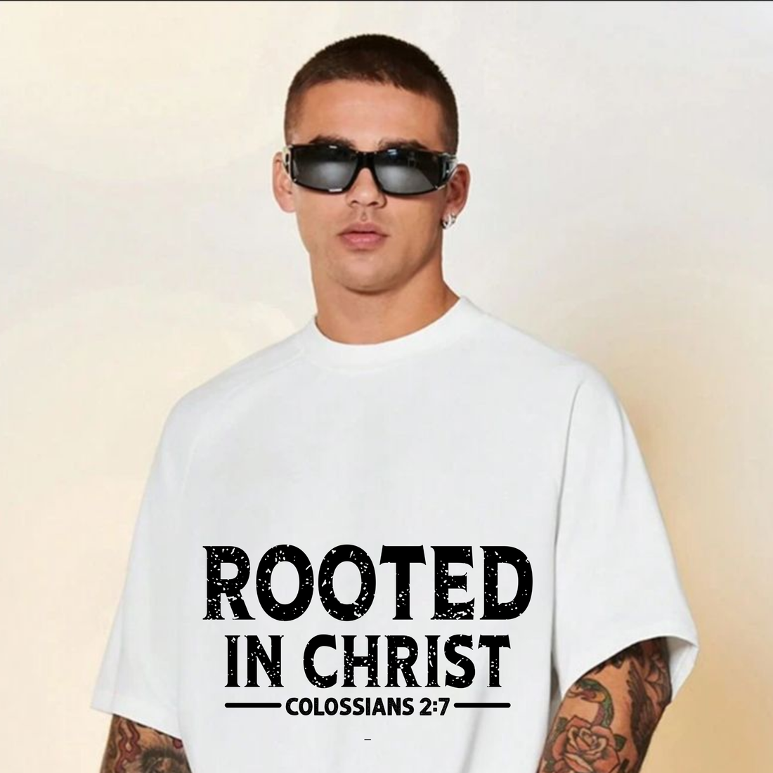 Rooted in Christ T-Shirt — Colossians 2:7 Christian Tee